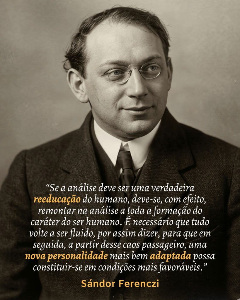 Nela você vai entender direitinho em que sentido Ferenczi usa as expressões “reeducação”, “nova personalidade” e “mais bem adaptada”.